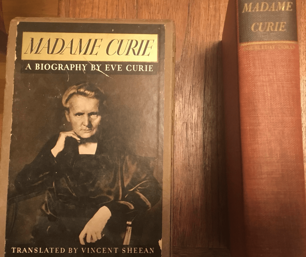 Doris didn’t know the answer, but she was flattered that this fellow thought she was the kind who would know. War clouds were gathering over France and Ms. Curie was lecturing on “French Women and the War”. Mme. Elsa Schiaparelli, the clothes designer, had just fled Paris and was likewise touring the U.S. As she was planning her tour, Ève had scandalized Schiaparelli by assembling no special wardrobe. Schiaparelli told her “it would be ridiculous for you to appear in pre-War costumes!” So, the publicity-wise couturier created gowns for her—among other things, a black oilskin coat lined with fluffy lamb’s wool and equipped with huge pockets—just the thing for a Paris air raid, or lecturing in Michigan. Unlike her mother, who usually wore simple, black dresses, the musician and wartime journalist Ève “always cared about smart clothes, wore high-heeled shoes and make-up, and loved shining at parties.”